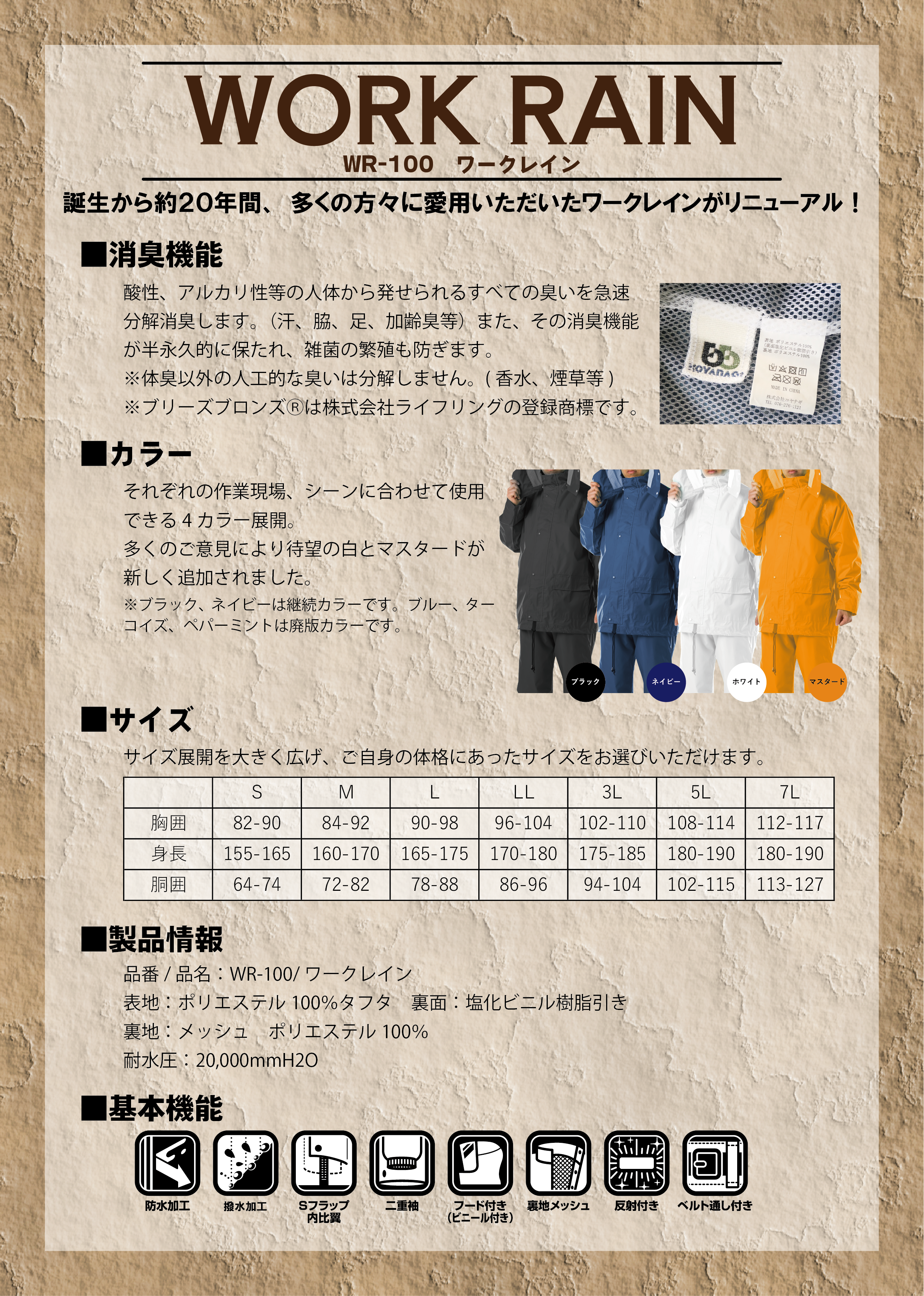 その名の通り、作業に対応する定番レインスーツ